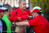 I finished the swim portion in 1:14 which was 10 minutes faster than Louisville. I thought that was a great start to the day. Exiting the swim you have to run a quarter mile to transition. Once in transition I took my time to change, get sun screen, take a pitstop and head out on the bike (8:43 min). The bike course was very scenic and always changing. I like the bike course in general but it would be better without that screaming, white knuckling downhill at 40 mph+ with people passing and side wind gust messing with the front areo wheel. Even at the very bottom there is a curve in the road which takes of your ability to stay upright. Had to do it twice. I realized that by the 56 mile midpoint I was low on energy and need to fuel up so I stopped at one of the aid stations and filled up my gel bottles and fluids. Ate some gel squares and off it went. I ended up eating over 17 gel packs and 8 bottles of liquid on the bike alone.